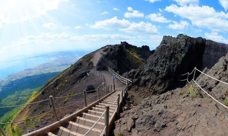In the afternoon, continue your adventure to Mount Vesuvius, the only active volcano on mainland Europe, towering over the Bay of Naples. Here you will meet an expert Alpine guide who will accompany you on a scenic hike along panoramic trails. Admire the ancient Somma crater and the lava flow from the 1944 eruption as you ascend to approximately 3,000 feet (900 meters).
